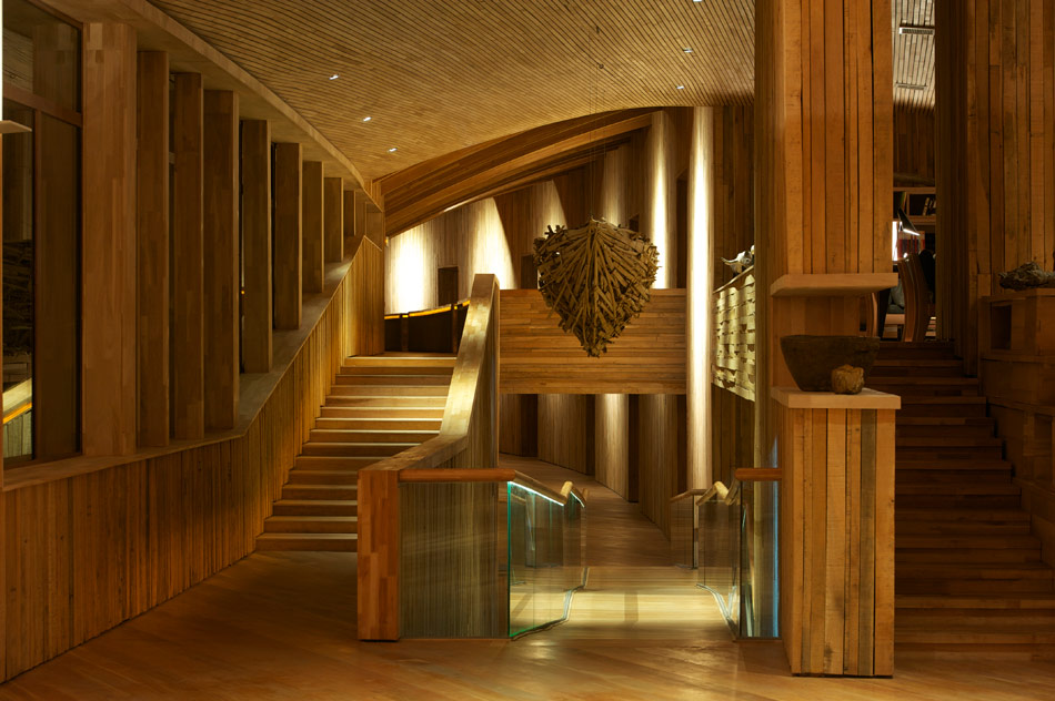 这一地区的景观经过长年累月的风蚀,已经改变了形态,因此建筑师将这座酒店设计成另一座山丘,它的形态由大自然 the resort is clad in lenga wood which will age naturally over time photo by pia vergara