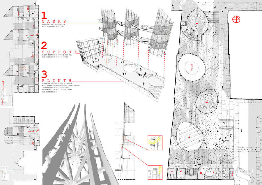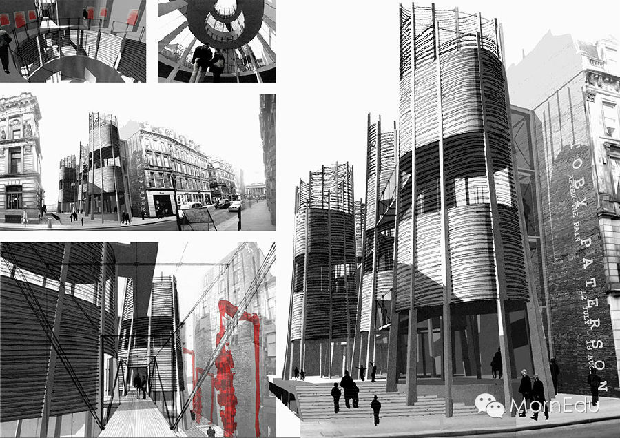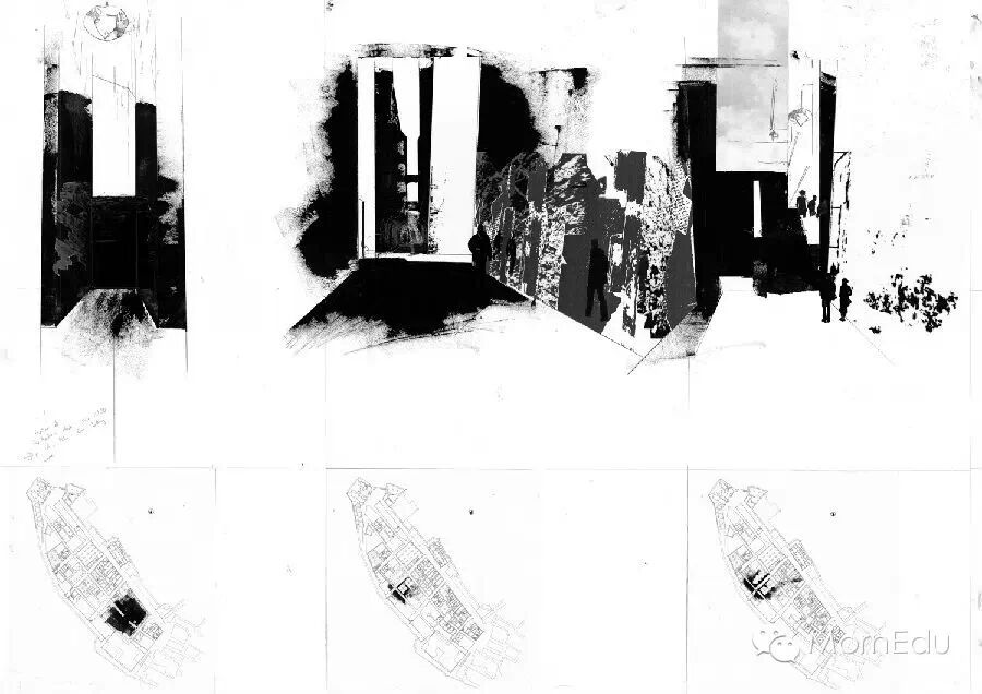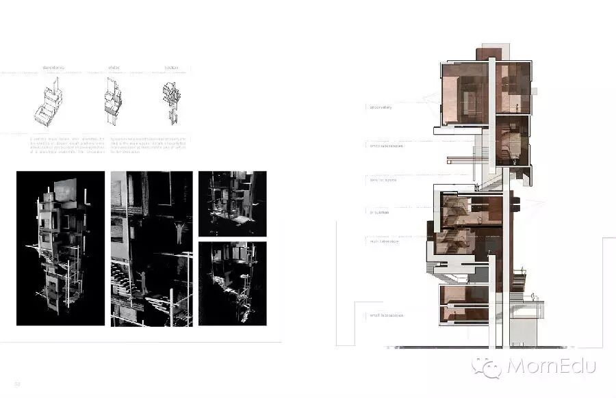 切忌以设计结果或效果图作为作品的核心或结尾,最好是一些解释的图,让读者有兴趣继续深入进去看,可以是分析图、建筑技术的原理图,甚至只是一张剖面。