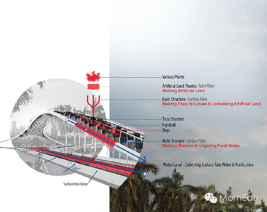 效果图配合节点图展示建筑技术和视觉关系之间的关联性。