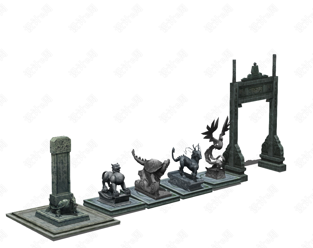中式雕塑景观模型