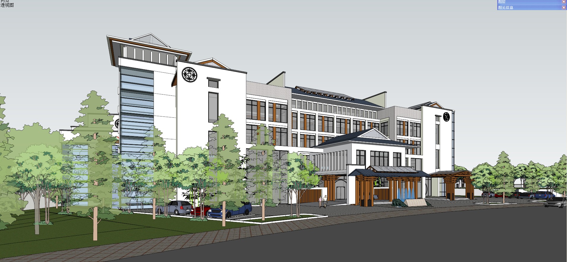 现代风格中式酒店模型