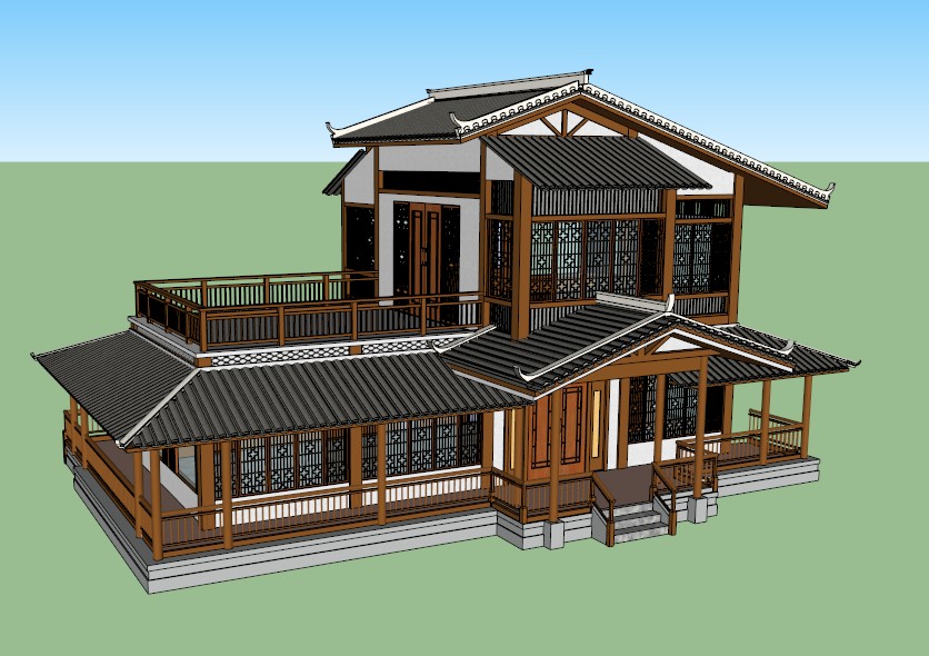 中式茶室su建筑模型
